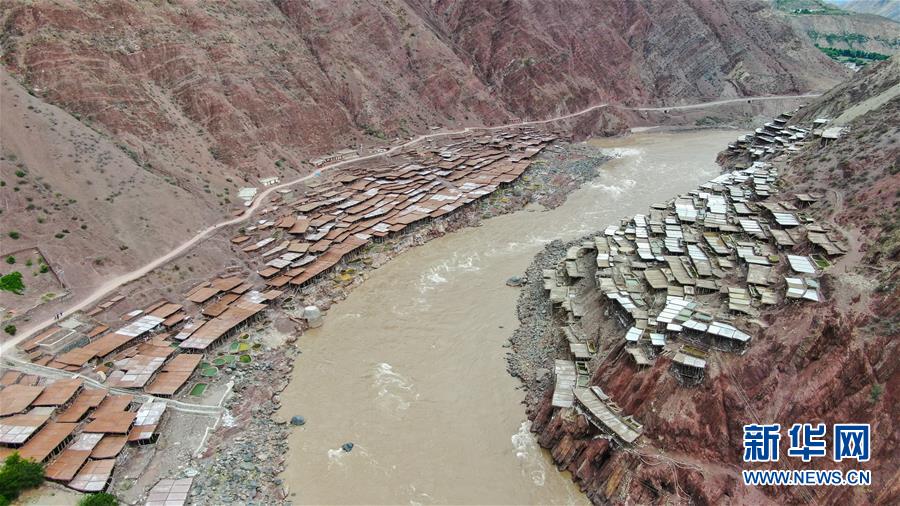 這是位于瀾滄江畔的西藏芒康縣納西民族鄉(xiāng)加達村的鹽田(6月4日無人機拍攝)。新華社記者晉美多吉攝