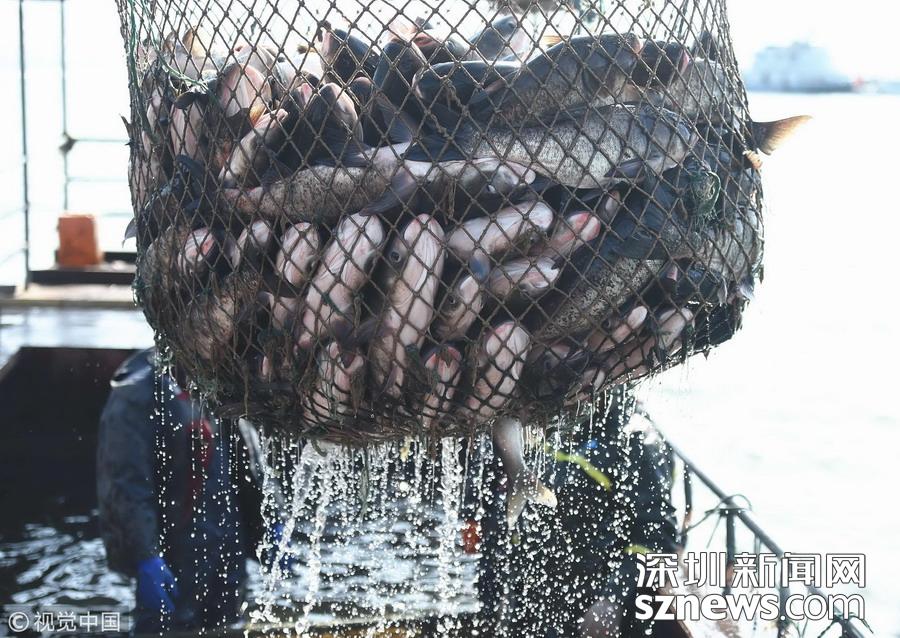 江蘇揚(yáng)州:天氣轉(zhuǎn)涼 捕魚上市正當(dāng)時(shí)