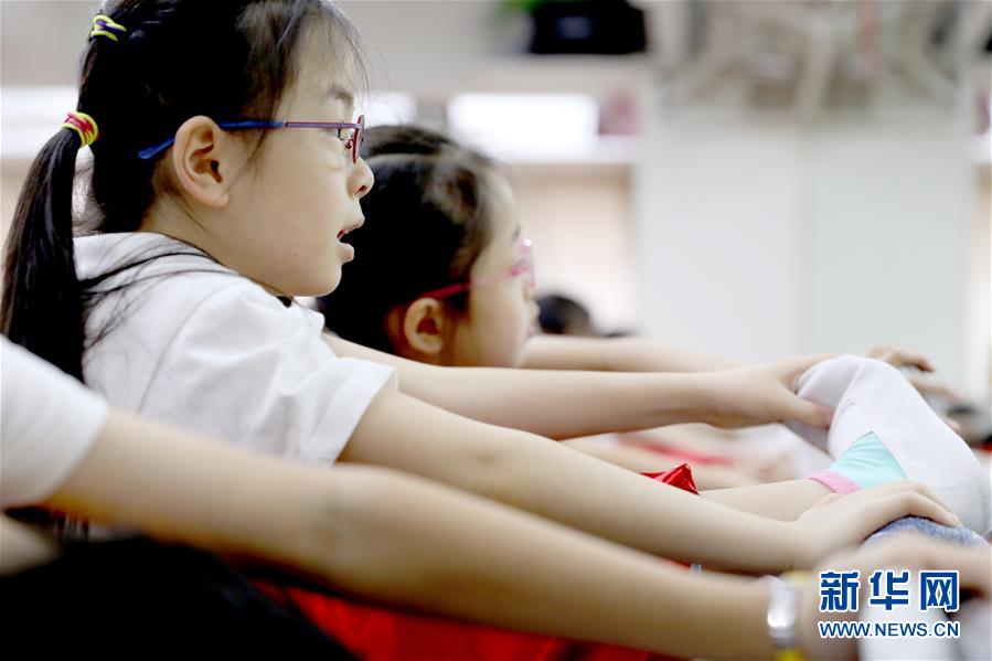 在聲輝粵劇推廣協(xié)會排練室里,孩子們在壓腿(6月8日攝)。 聲輝粵劇推廣協(xié)會成立于2003年,是香港重要粵劇藝術(shù)團體之一,致力于向青少年推廣粵劇。協(xié)會目前有兩個初班,3個中班,一個青少年班?;泟∮址Q“廣東大戲”,表演技藝包括“唱做念打”,即唱功、身段、臺詞、武打,主要流行于廣東、廣西和香港、澳門等地區(qū)。2009年,粵劇被列入聯(lián)合國教科文組織人類非物質(zhì)文化遺產(chǎn)代表作名錄,今年正逢十周年。 新華社記者 吳曉初 攝