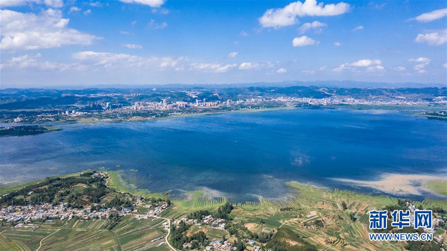 6月20日無(wú)人機(jī)拍攝的草海國(guó)家級(jí)自然保護(hù)區(qū)萬(wàn)噸生活污水處理廠。 新華社記者 陶亮 攝