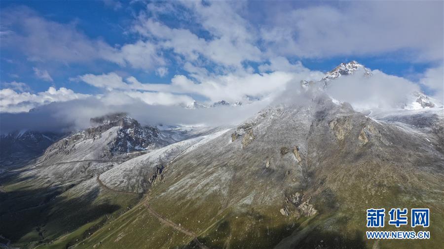 這是雪后初霽的拉依布拉克牧場景觀(6月22日無人機(jī)拍攝)。