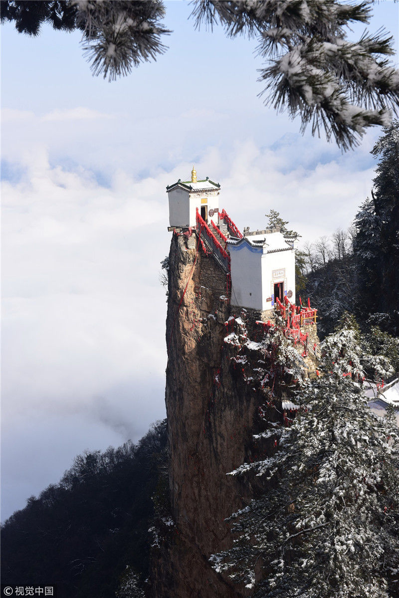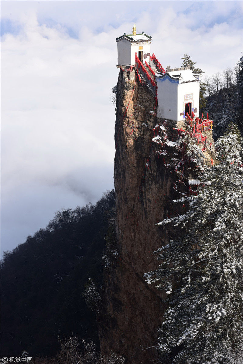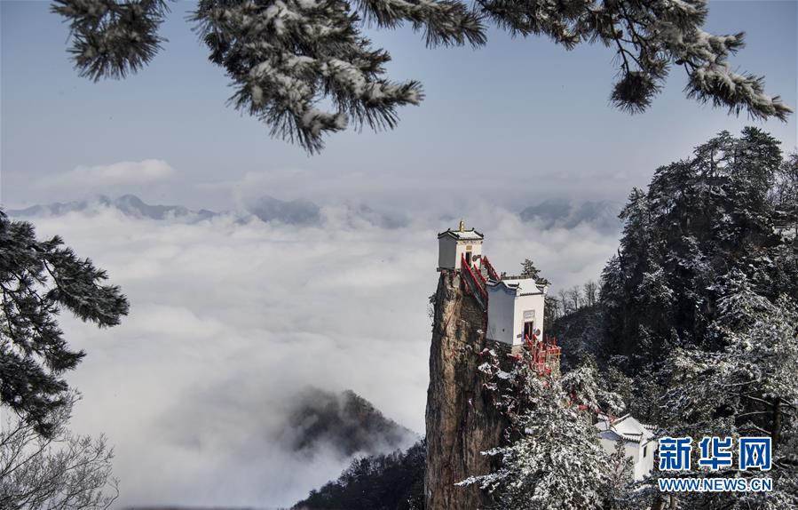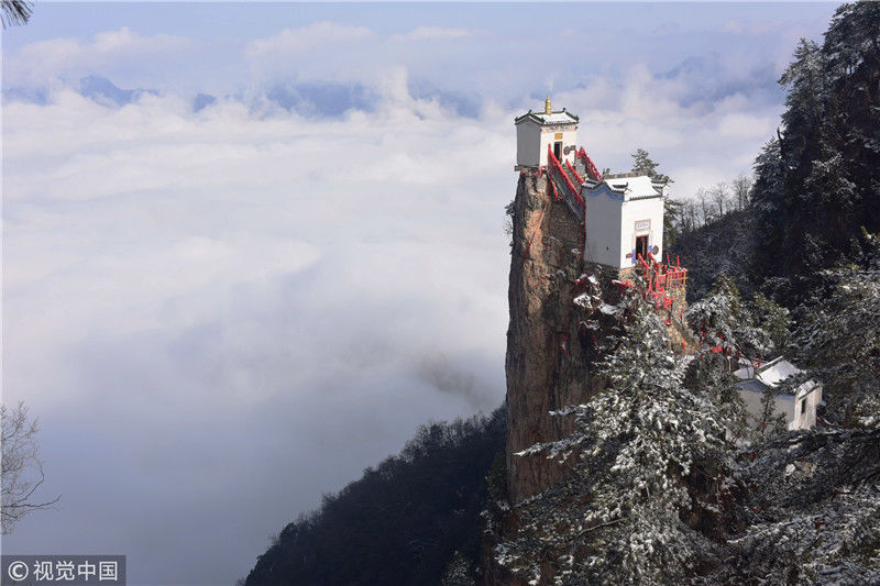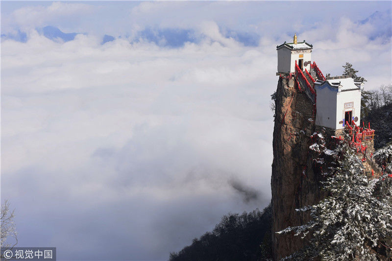 3月3日拍攝的塔云山金頂觀音殿。雪后初霽,秦嶺深處的塔云山景區(qū)云海翻騰,宛如仙境。位于陜西省鎮(zhèn)安縣柴坪鎮(zhèn)境內(nèi)的塔云山,其主峰上的古建筑群始建于明正德年間,其中金頂觀音殿建于塔云山萬仞絕頂之上,遠遠望去,壯觀無比。 新華社記者陶明攝