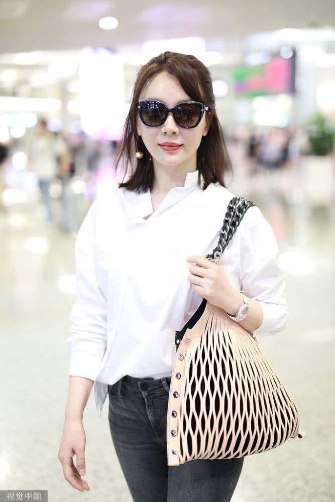 2019年8月4日,上海,陳數(shù)現(xiàn)身機場。她穿白色襯衫簡約裝扮依舊知性干練,架黑超拎漁網(wǎng)紋展露職場女性魅力,露淺笑溫柔甜美超迷人。