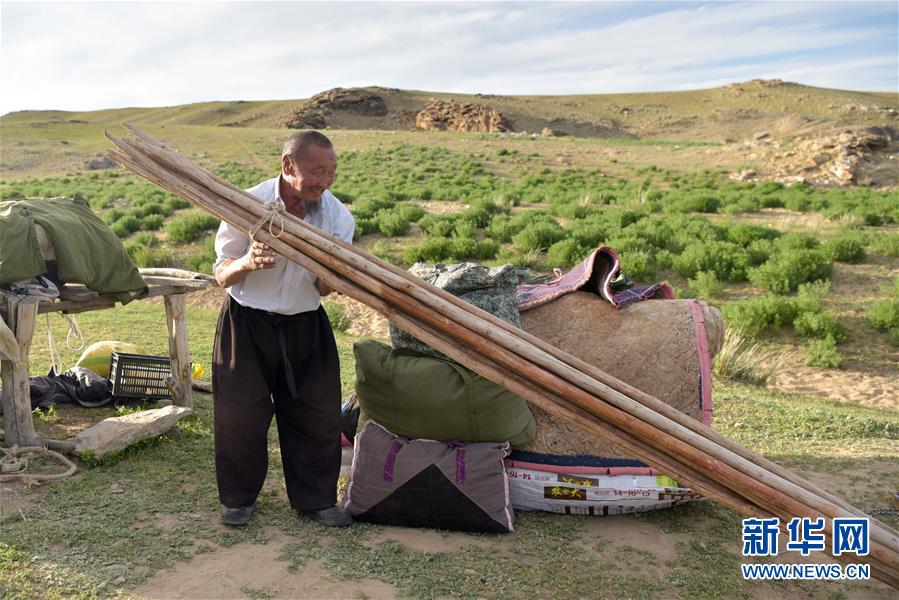 在新疆阿勒泰地區(qū)福??h牧區(qū),牧民在制作氈房飾品(6月5日攝)。眼下,隨著新疆多地夏季牧場開放,阿勒泰地區(qū)的哈薩克族牧民又迎來了轉(zhuǎn)場季,他們趕牛羊,逐水草,游走在阿爾泰山間的牧道上,形成一道流動的風(fēng)景。轉(zhuǎn)場時,牧民們攜子女及親屬騎馬趕著牲畜徐徐前行,駝隊或馬隊馱著全部家當,走到哪里,晚上就宿營在哪里。與傳統(tǒng)轉(zhuǎn)場方式不同,隨著生活條件的改善,一些牧民會雇汽車將家中的大件物品提前運送到目的地,轉(zhuǎn)場途中只需準備食物和簡易氈房便可以輕裝前行……新華社記者丁磊攝