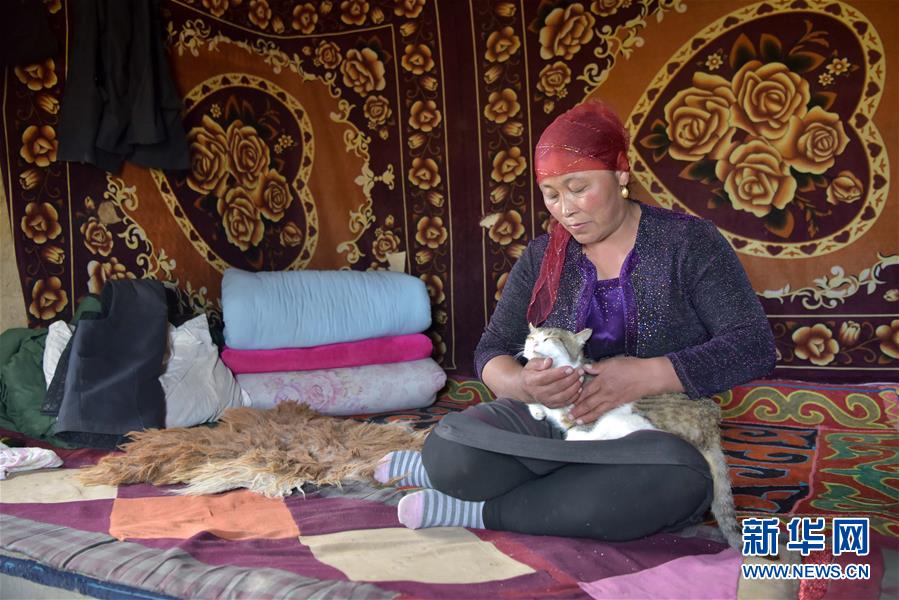 在新疆阿勒泰地區(qū)福??h,牧民在家中等待轉(zhuǎn)場運輸車輛(6月6日攝)。新華社記者丁磊攝