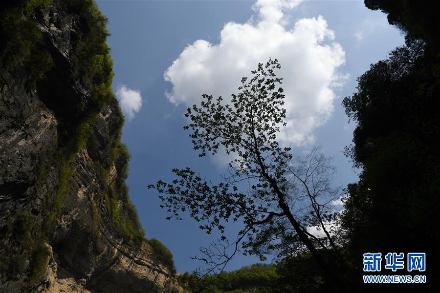 這是在地洞河天坑底部拍攝的植物。位于陜西省漢中市寧強(qiáng)縣的地洞河天坑,是禪家?guī)r天坑群中規(guī)模最大的一處天坑,坑內(nèi)分布有石鐘乳、石筍,具有極高的地質(zhì)研究?jī)r(jià)值。新華社 張博文 攝