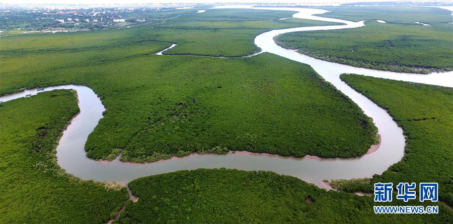 這是位于海口的海南東寨港國家級(jí)自然保護(hù)區(qū)內(nèi)的紅樹林(2018年7月24日無人機(jī)拍攝)。新華社記者郭程攝