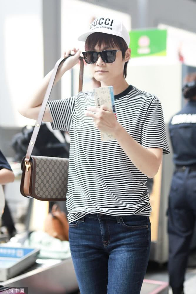 李宇春條紋裝扮現(xiàn)身機(jī)場(chǎng),青春活力,人氣爆棚
