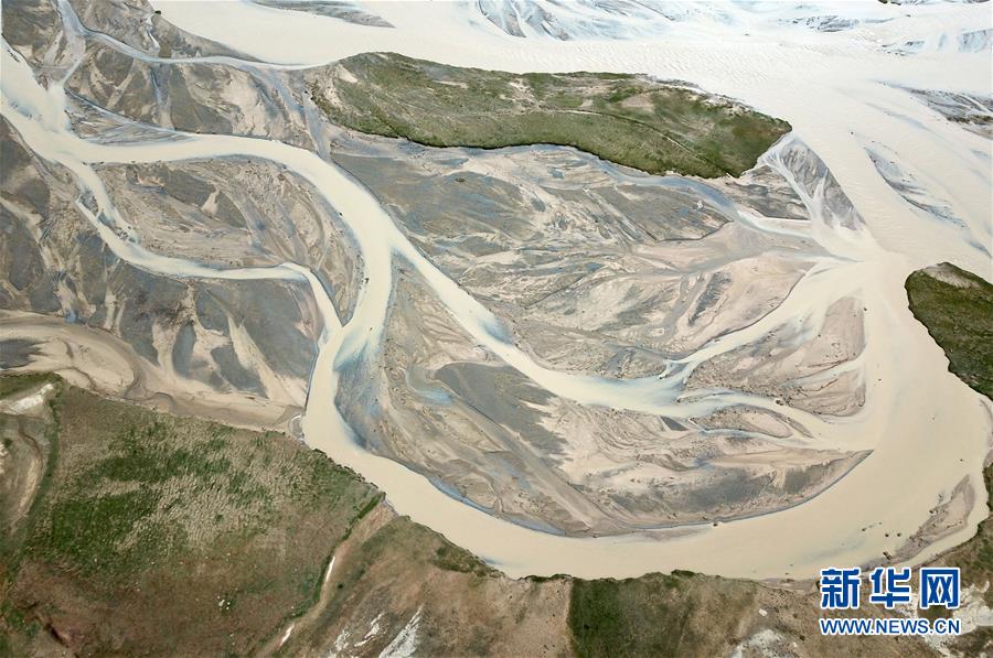 甘肅省酒泉市阿克塞哈薩克族自治縣境內(nèi)的大哈爾騰河(8月22日無(wú)人機(jī)拍攝)。新華社記者 馬寧 攝