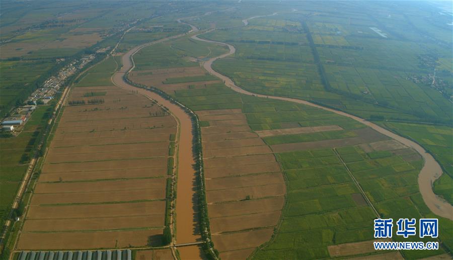 青銅峽市境內的黃河(9月3日無人機拍攝)。新華社記者劉詩平攝