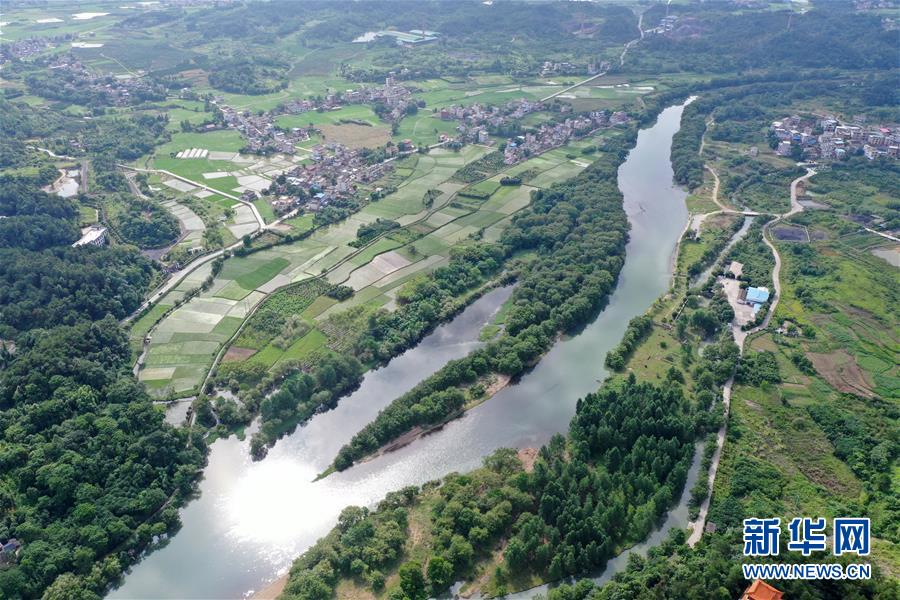這是6月30日無人機拍攝的廣西興安縣靈渠及周邊景色。 位于廣西興安縣的靈渠是世界上保存最完整的古代水利工程之一,至今仍發(fā)揮著農田灌溉、排洪泄洪作用。2018年,靈渠入選世界灌溉工程遺產名錄。 新華社記者 陸波岸 攝