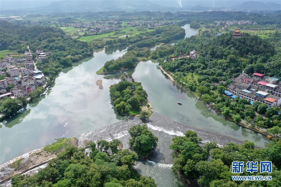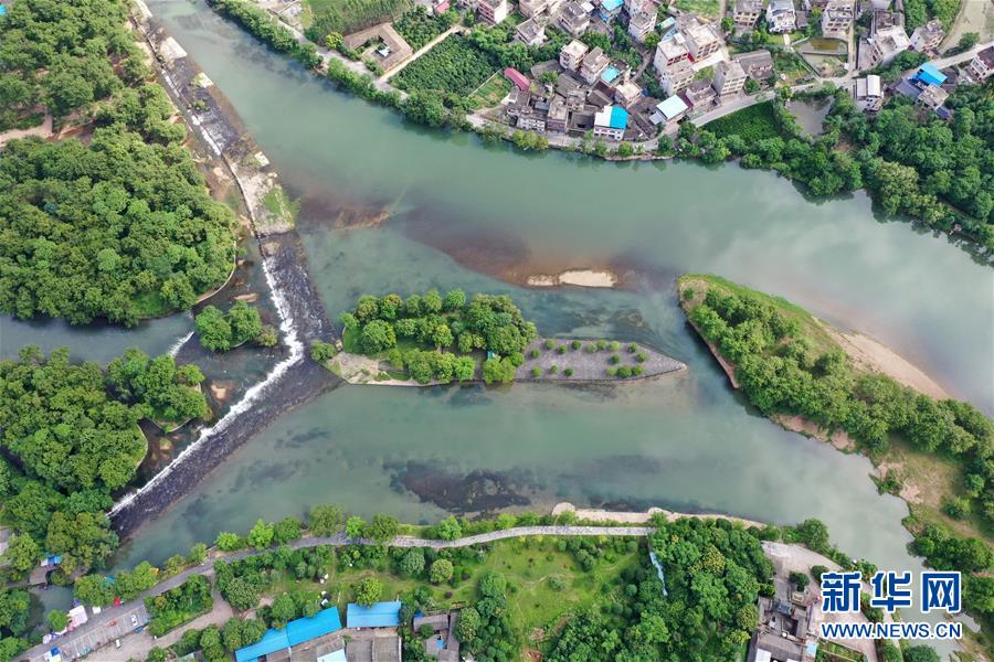 這是6月30日無人機拍攝的廣西興安縣靈渠。 位于廣西興安縣的靈渠是世界上保存最完整的古代水利工程之一,至今仍發(fā)揮著農田灌溉、排洪泄洪作用。2018年,靈渠入選世界灌溉工程遺產名錄。 新華社記者 周華 攝