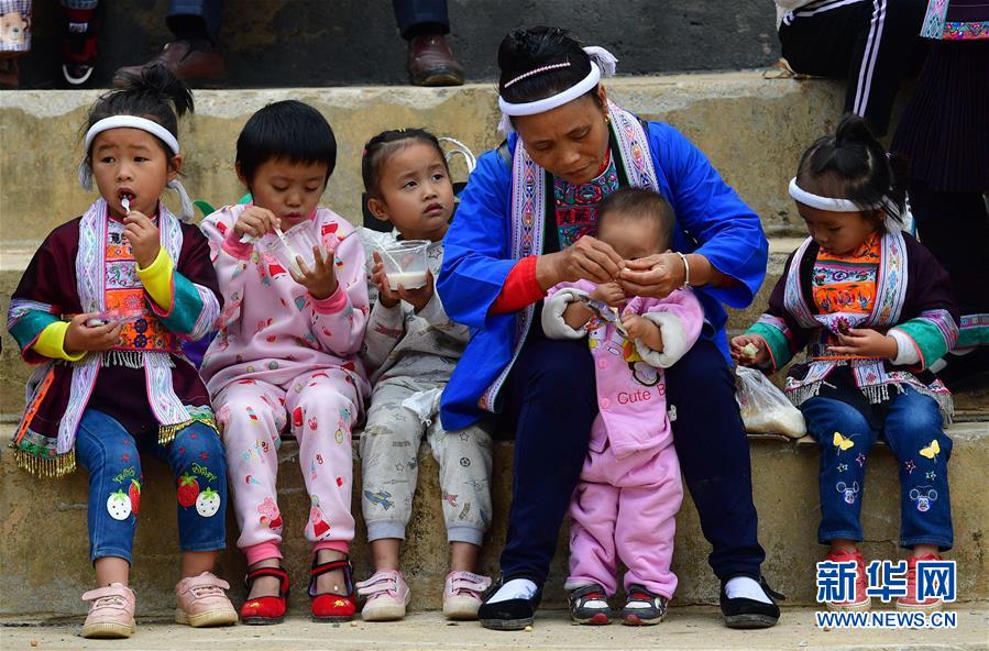 10月28日,在廣西融水苗族自治縣拱洞鄉(xiāng)龍令村,小朋友們參加慶祝豐收活動。新華社記者 黃孝邦 攝