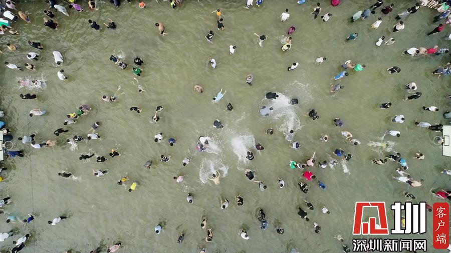 有人撒魚網(wǎng),有人用網(wǎng)兜,還有人直接徒手捉魚,手段各異引路人圍觀。