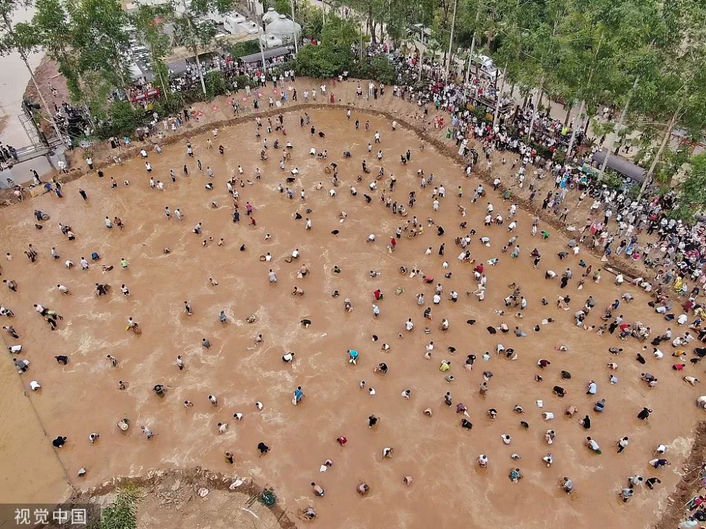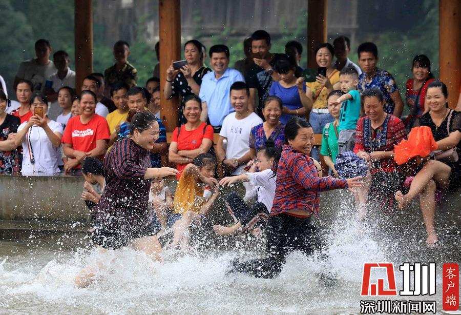 在廣西柳州市融安縣安寧村大袍屯拍攝的“鬧魚”活動現(xiàn)場。