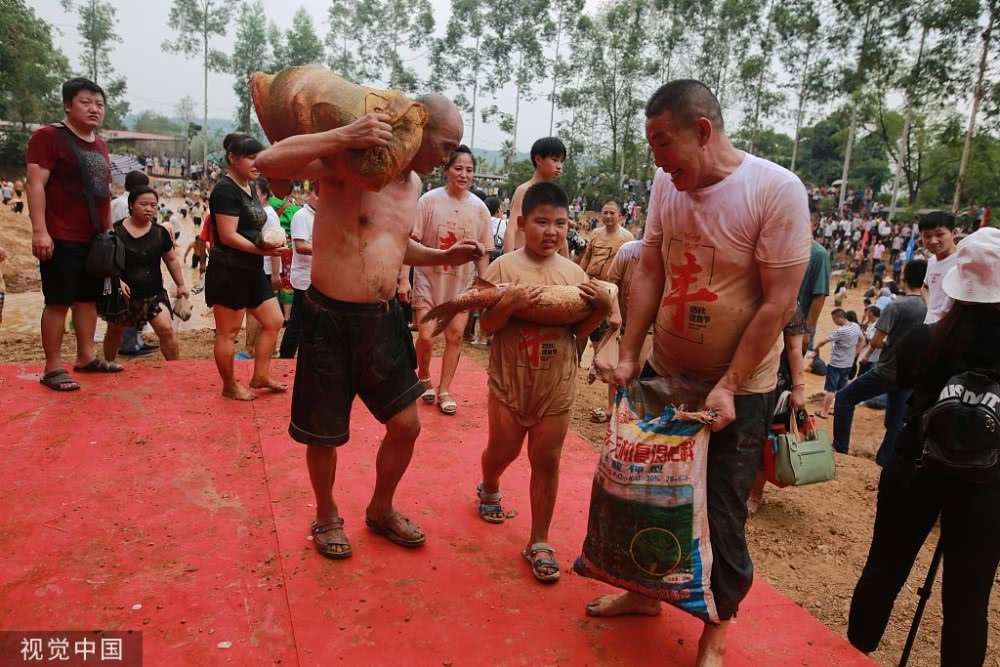 2019年9月7日,重慶,涪陵區(qū)曬秋捉魚活動在紅酒小鎮(zhèn)舉行,現(xiàn)場上演搶魚“大戰(zhàn)”。