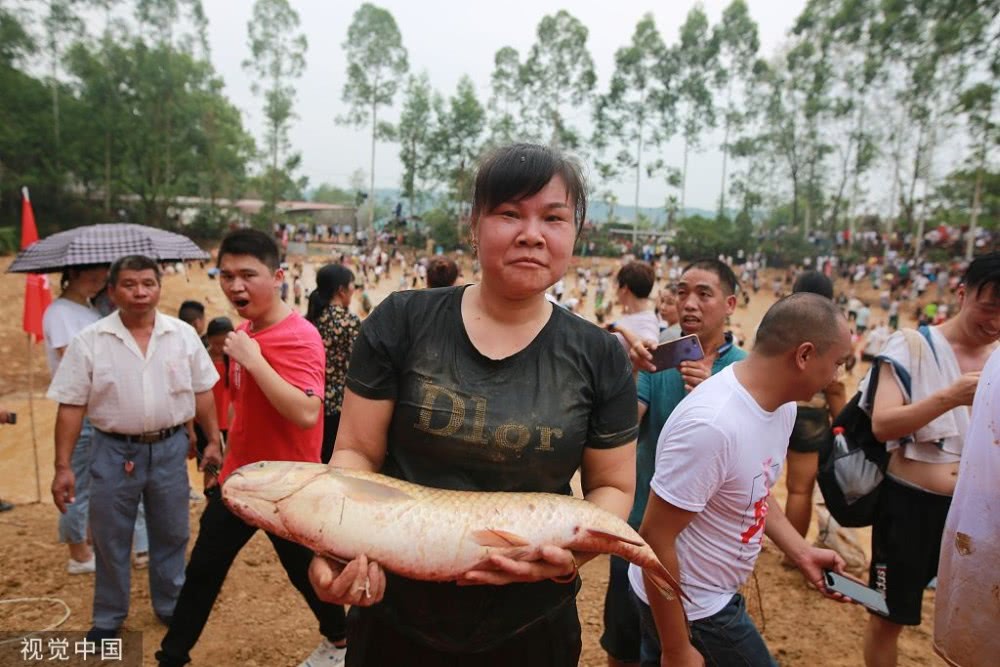 現(xiàn)場上演了一場搶魚大戰(zhàn)。
