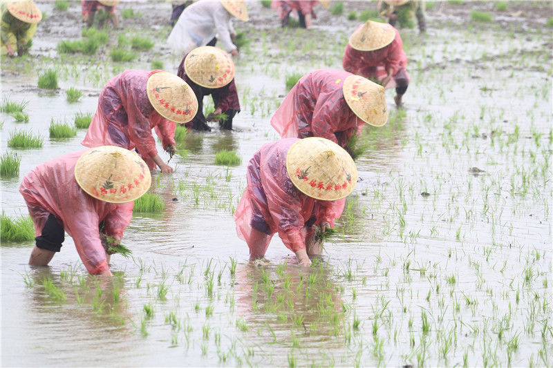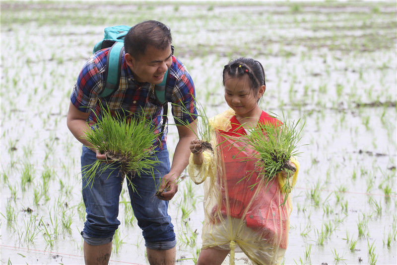 2019年5月26日,江蘇淮安市洪澤區(qū)岔河鎮(zhèn)舉辦“插秧節(jié)”活動,游客通過手工插秧比賽、親子插秧體驗、稻田抓魚、稻田拔河等趣味游戲體驗農(nóng)耕樂趣,感受田園生活。陳凱/視覺中國 編輯/陳進(jìn)