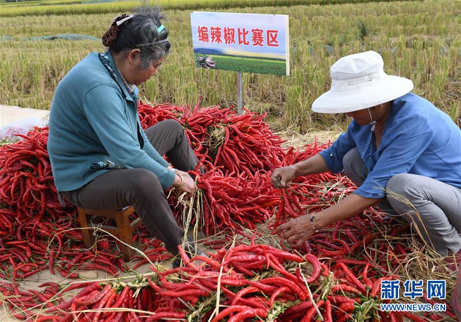 9月15日,云南尋甸回族彝族自治縣七星鎮(zhèn)魯古村的農(nóng)婦在參與編辣椒比賽。 新華社記者 楊宗友 攝