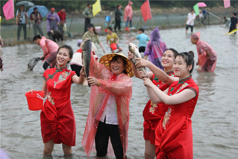 10月28日,在廣西融水苗族自治縣拱洞鄉(xiāng)龍令村,村民參加抓魚比賽。當(dāng)日,廣西融水苗族自治縣拱洞鄉(xiāng)舉辦香糯泉水螺美食文化節(jié),苗族、侗族、瑤族、壯族等各民族同胞歡聚一堂,通過摸螺抓魚比賽、田螺姑娘評選、跳蘆笙踩堂舞、品香螺百家宴等豐富多彩的活動,慶祝金秋豐收。近年來,拱洞鄉(xiāng)依托生態(tài)資源優(yōu)勢,大力發(fā)展香糯種植、田螺養(yǎng)殖等特色產(chǎn)業(yè)。全鄉(xiāng)的田螺養(yǎng)殖面積4000多畝,成立4家田螺產(chǎn)業(yè)專業(yè)合作社,帶動2000多農(nóng)戶參與到田螺養(yǎng)殖。目前,田螺養(yǎng)殖已成為當(dāng)?shù)刎毨裘撠氈赂坏闹匾a(chǎn)業(yè)。新華社記者 黃孝邦 攝
