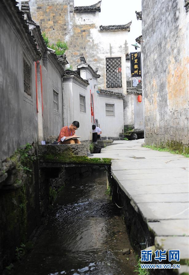 4月24日,繪畫愛好者在西遞風景區(qū)寫生。新華社記者張端攝