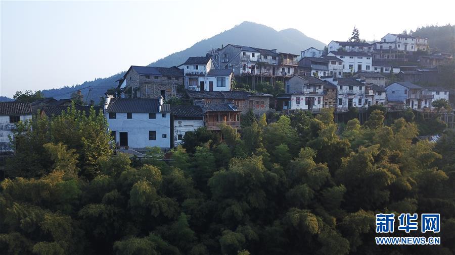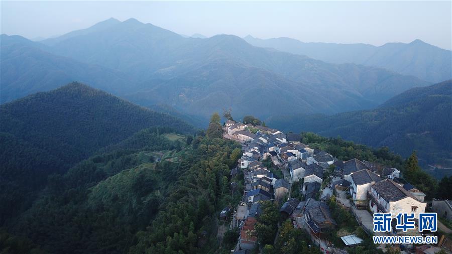 晨曦中的木梨硔村景色(9月18日無人機拍攝)。9月18日清晨,地處皖南山區(qū)的安徽省黃山市休寧縣木梨硔村沐浴在晨曦之中,靜謐祥和。新華社記者張端攝