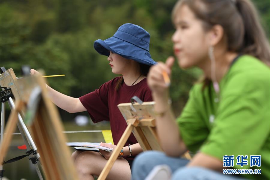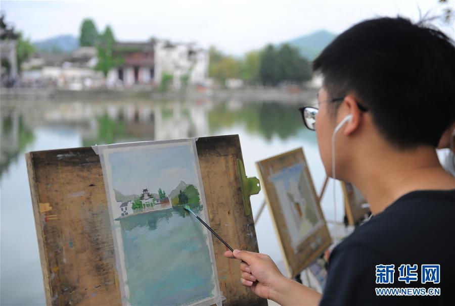 4月24日,繪畫愛好者在宏村風景區(qū)寫生。新華社記者任鵬飛攝