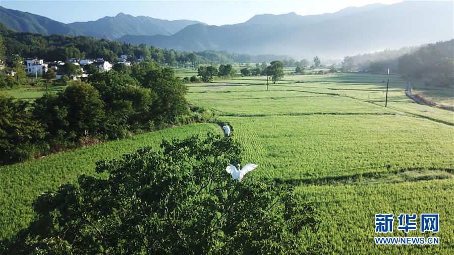這是8月4日無人機拍攝的安徽黟縣宏村風景區(qū)附近的農田晨景。新華社記者張端攝
