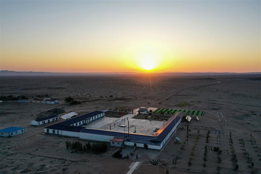 這是內蒙古自治區(qū)額濟納旗算井子邊境派出所(9月25日無人機拍攝)。新華社記者劉磊攝