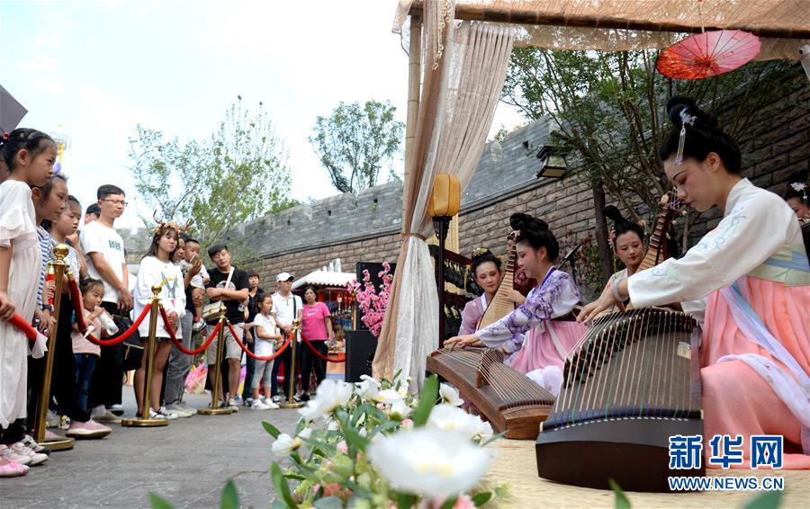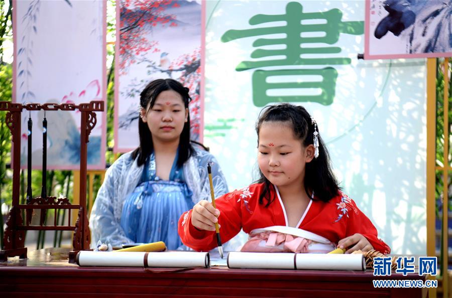 10月3日,在河北邯鄲市磁縣方特主題公園內(nèi),游客在練習(xí)書法。 當(dāng)日是國(guó)慶假期第三天,人們紛紛走出家門,樂享假期。 新華社記者 王曉 攝