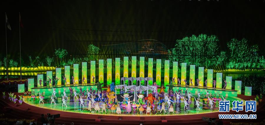 10月9日,演員在節(jié)目“綠野漫游”中表演。當(dāng)日,2019年中國(guó)北京世界園藝博覽會(huì)閉幕式在北京舉行。新華社記者翟健嵐攝