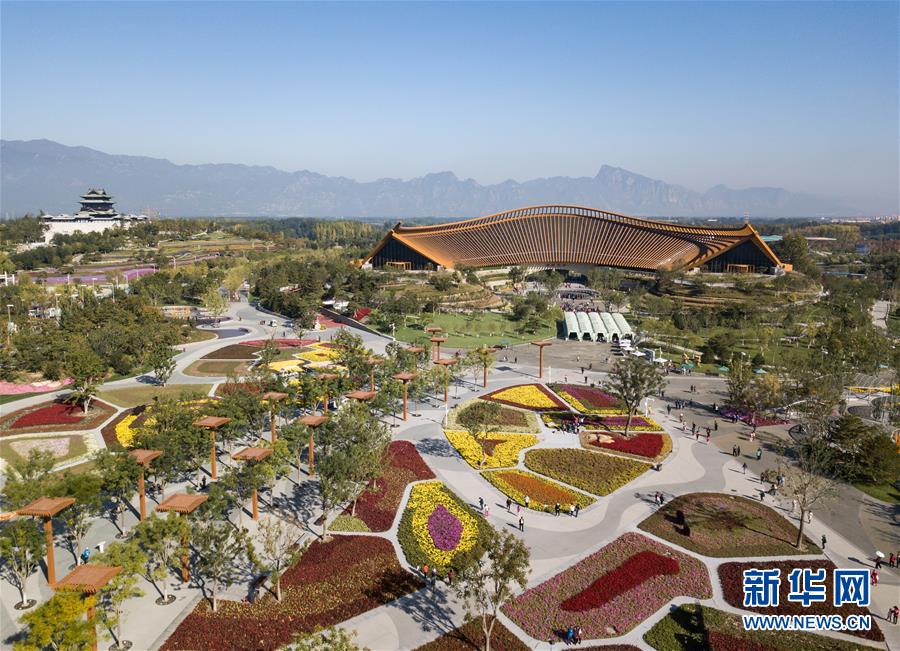 這是北京世園會園區(qū)一角(10月7日無人機(jī)拍攝)。新華社記者鞠煥宗攝