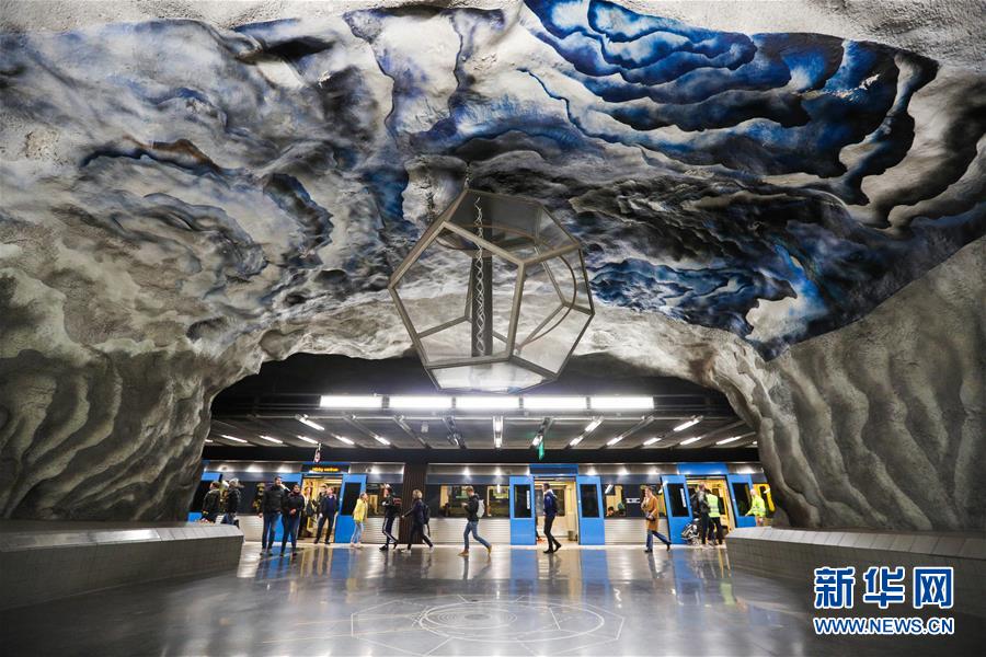 10月9日,在瑞典斯德哥爾摩,乘客在一處地鐵站內(nèi)行走。新華社記者鄭煥松攝
