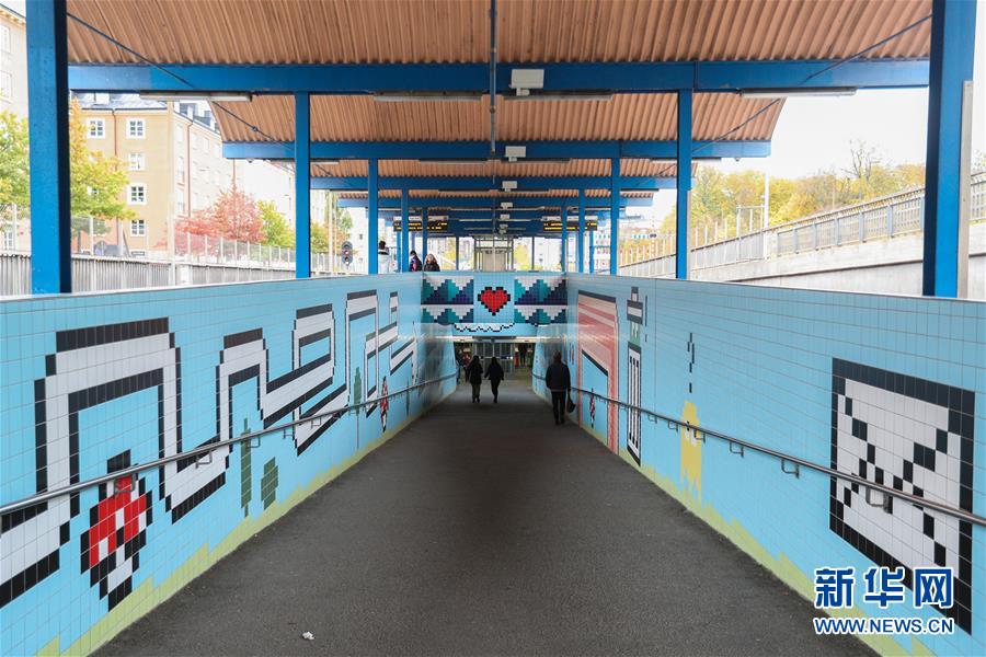 10月9日,在瑞典斯德哥爾摩,乘客在一處地鐵站內行走。新華社記者鄭煥松攝