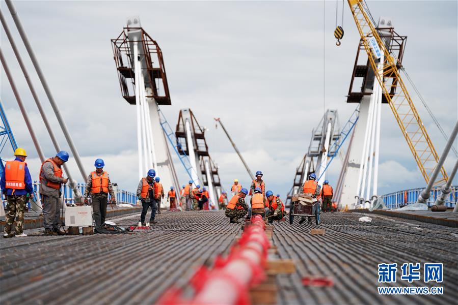 目前,中俄合建的首座跨境公路大橋——黑河到布拉戈維申斯克黑龍江(阿穆爾河)大橋進(jìn)入橋面鋪裝施工作業(yè)階段。大橋于今年5月31日順利合龍,目前中方每天有約200名工人進(jìn)行混凝土澆鑄橋面作業(yè),預(yù)計(jì)橋面施工將持續(xù)到9月上旬。大橋全長1284米,建成后將形成一條新的國際公路通道,實(shí)現(xiàn)中俄地方城市之間互聯(lián)互通。
