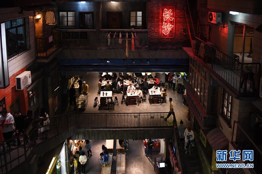 10月12日,食客們?cè)谝患覍⒗祥L(zhǎng)沙市井文化概念與餐飲結(jié)合的“網(wǎng)紅”餐館內(nèi)用餐。