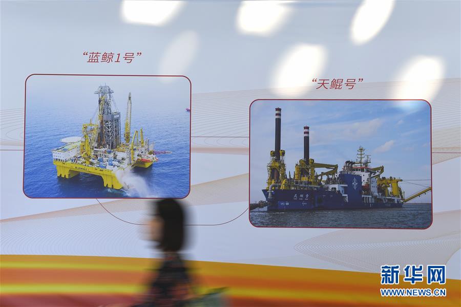 10月15日,與會者經(jīng)過“藍鯨1號”鉆井平臺與“天鯤號”自航絞吸挖泥船展板。 當日,2019中國海洋經(jīng)濟博覽會在深圳開幕,大批海洋“大國重器”及高新技術研發(fā)成果亮相。 中國海洋經(jīng)濟博覽會被譽為“中國海洋第一展”。2019中國海洋經(jīng)濟博覽會以“藍色機遇、共創(chuàng)未來”為主題,吸引450余家企業(yè)和機構(gòu)參展,將重點圍繞現(xiàn)代港口建設、海洋高新技術與裝備制造、海洋可再生能源利用、海水淡化與綜合利用等熱點領域,推出新技術成果,推進中外企業(yè)洽談合作。 新華社記者毛思倩攝