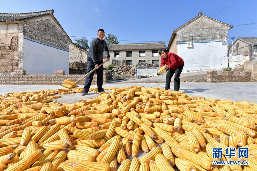 在奪火鄉(xiāng)高谷堆村,村民在晾曬玉米(10月13日攝)。 新華社記者 曹陽(yáng) 攝