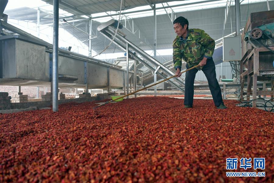 在奪火鄉(xiāng)高谷堆村,村民在晾曬山楂片(10月14日攝)。 新華社記者 曹陽(yáng) 攝