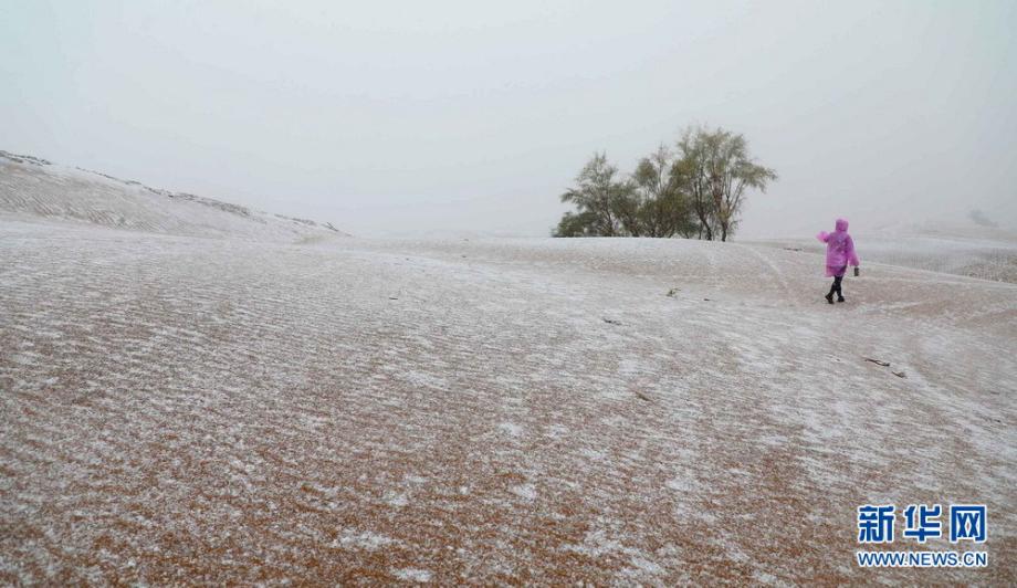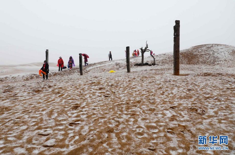 10月15日,游客在寧夏中衛(wèi)市沙坡頭景區(qū)欣賞沙漠雪景。深秋時(shí)節(jié),位于騰格里沙漠邊緣的寧夏中衛(wèi)市沙坡頭景區(qū)迎來一場(chǎng)降雪。漫漫黃沙被覆蓋在皚皚白雪之下,呈現(xiàn)出一種別樣的美。新華網(wǎng)杜文杰攝