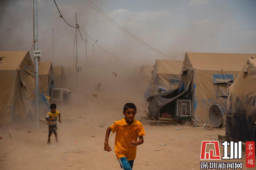 當(dāng)?shù)貢r間2014年7月23日,伊拉克Khazir,Khazir難民營的孩子們在沙塵暴中奔跑。逃離“伊拉克和黎凡特伊斯蘭國”(ISIS)極端組織的伊拉克人在Khazir難民營里避難。這所難民營建于6月10日,目前有700人住在這里,其中大多數(shù)是穆斯林。