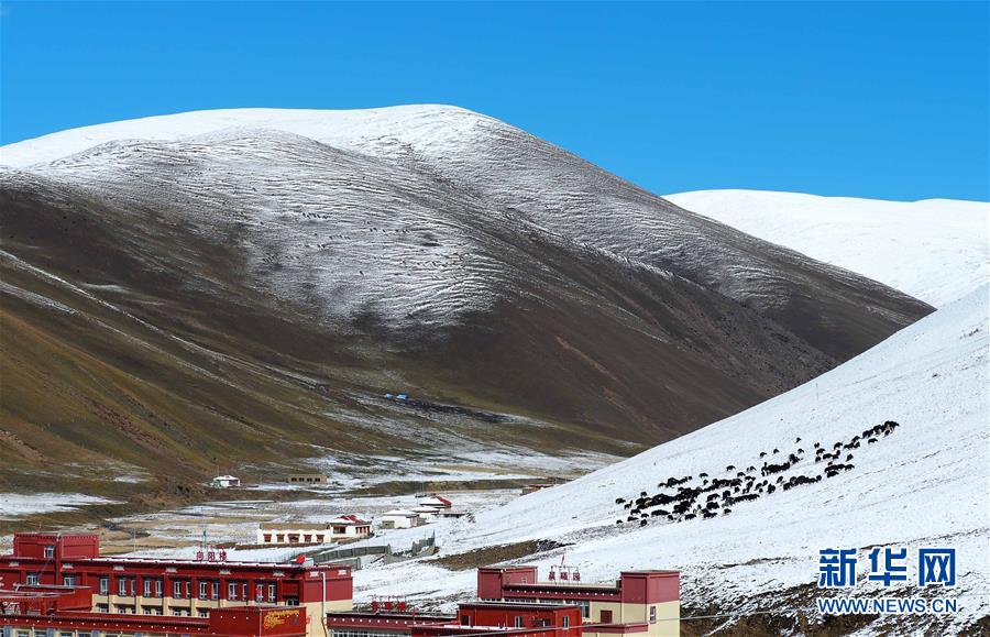 10月17日,在川藏線高爾寺山至理塘路段,部分游客在一個路邊觀景臺附近拍照留念。當(dāng)日,一場夜雪后,川藏線高爾寺山至理塘路段披上了一層銀裝。雪山、牦牛、云朵、松林,帶來了濃濃的雪域風(fēng)情。 新華社記者 王迪 攝