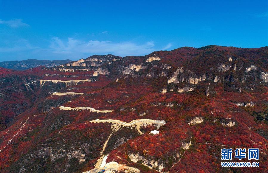 這是10月19日無人機(jī)拍攝的河北省涉縣太行紅葉大峽谷景色。金秋十月,河北省涉縣偏城鎮(zhèn)太行紅葉大峽谷的紅葉進(jìn)入觀賞佳期,吸引眾多游客前來登山賞景。新華社記者王曉攝