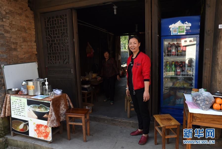 10月24日,班竹村村民王彩妃(前)站在自家的特色小吃攤前。王彩妃曾在縣城打工,村里旅游業(yè)發(fā)展起來后回家開了個(gè)小吃攤,收入比以前大大增加。浙江省新昌縣境內(nèi)的班竹村位于天姥山腳下,被稱為“天姥門戶”,曾是浙東“唐詩(shī)之路”上的驛站。近年來,班竹村依托深厚的文化底蘊(yùn)大力發(fā)展鄉(xiāng)村旅游,全村“人人參股、戶戶分紅”,將整個(gè)村莊打造為旅游綜合體,今年以來班竹村旅游收入已超過800萬元。新華社記者韓傳號(hào)攝