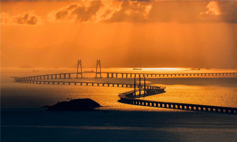 2018年10月22日早晨,從廣東珠海市的情侶路向東眺望,一輪紅日從東方冉冉升起,將港珠澳大橋映射得格外迷人。“超級工程”港珠澳大橋?qū)⒂?4日上午9時(shí)正式通車。張煒(香港分社)/中新社/視覺中國