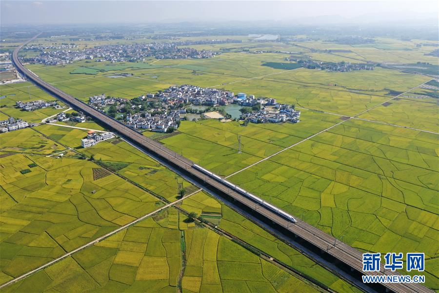 眼下,廣西賓陽(yáng)縣古辣鎮(zhèn)大面積稻田進(jìn)入收獲期,一列列南來(lái)北往的動(dòng)車(chē)從稻田間飛馳而過(guò),構(gòu)成一幅幅美麗的豐收?qǐng)D畫(huà)。