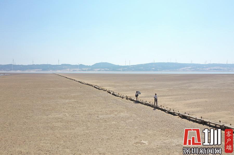 10月9日,江西省廬山市,游客行走在鄱陽(yáng)湖湖區(qū)干涸的湖面上。新華社記者胡晨歡攝