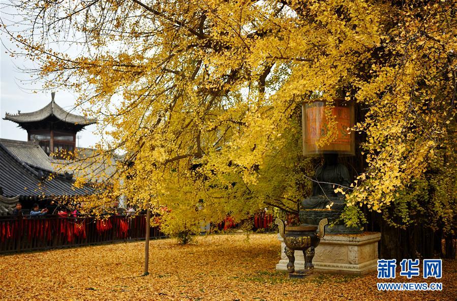 11月11日,人們在大覺寺內(nèi)觀賞古銀杏樹。新華社記者尹棟遜攝