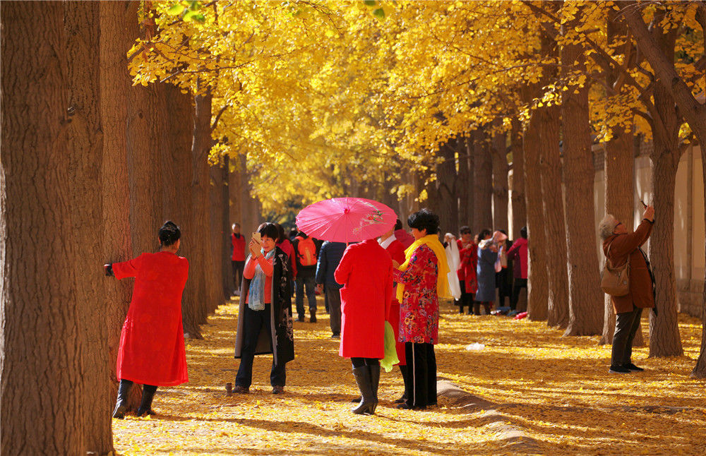 相關(guān)鏈接北京:銀杏大道遍地金黃吸引游客駐足拍照