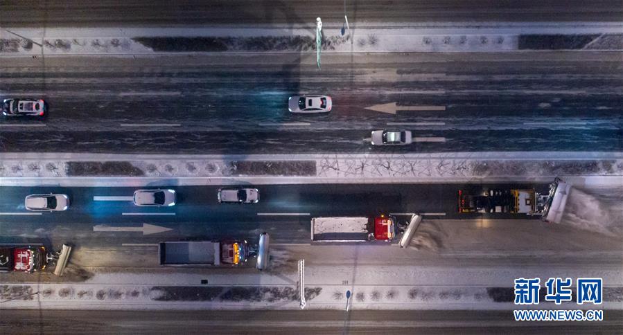 11月17日,在長春市南關(guān)區(qū)衛(wèi)星路快速路上,清雪車輛列隊清理路面積雪(無人機拍攝)。 當日,吉林省長春市遭遇強降雪天氣,長春市城市管理局及時啟動清雪預案。截至17日17時,全市共出動環(huán)衛(wèi)工人1.4萬余名,環(huán)衛(wèi)清雪車輛1400余臺,外雇社會化運雪車輛1600余臺。 新華社記者 張楠 攝